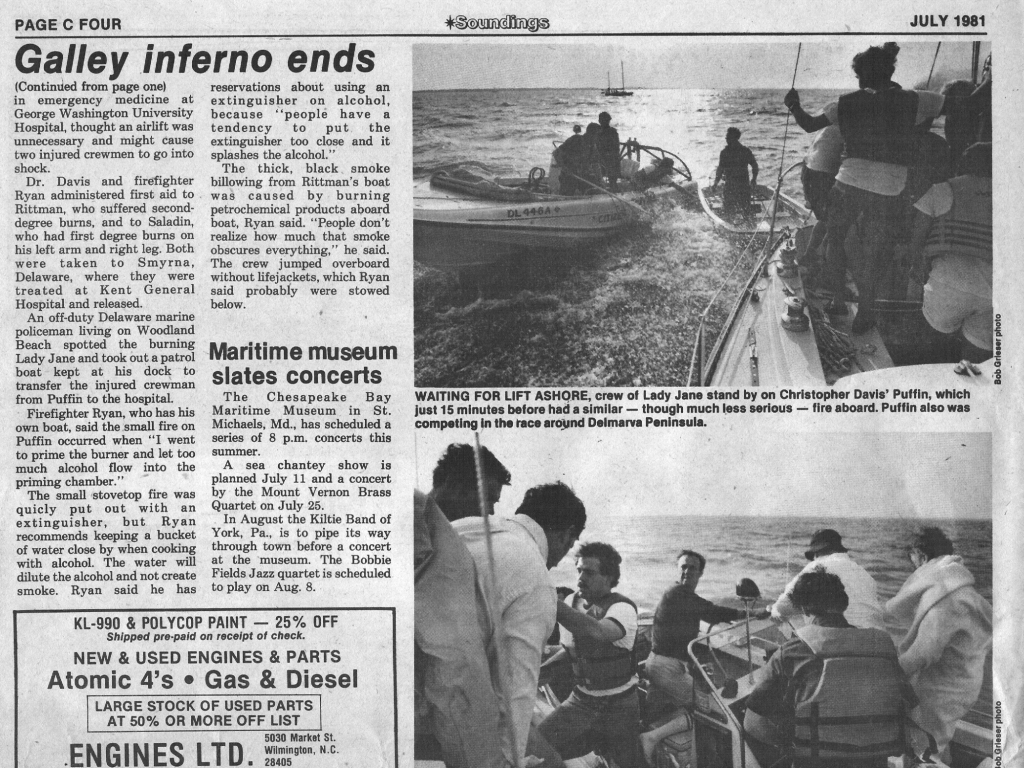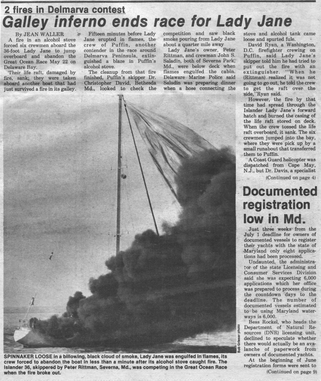 Puffin, C&C 30, in the Great Ocean Race Lady Jane Burns! I believe this is from 1981 or 1982. Coquina is visible in the