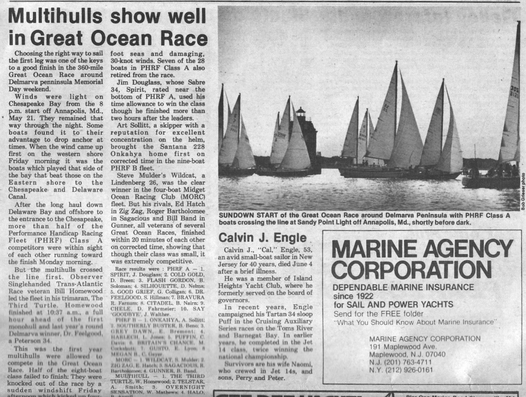 GREAT OCEAN RACE Coquina is a veterna of several Great Ocean Races.